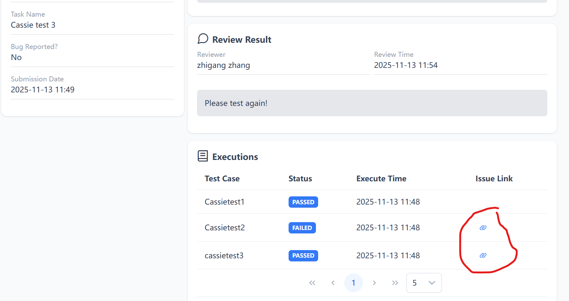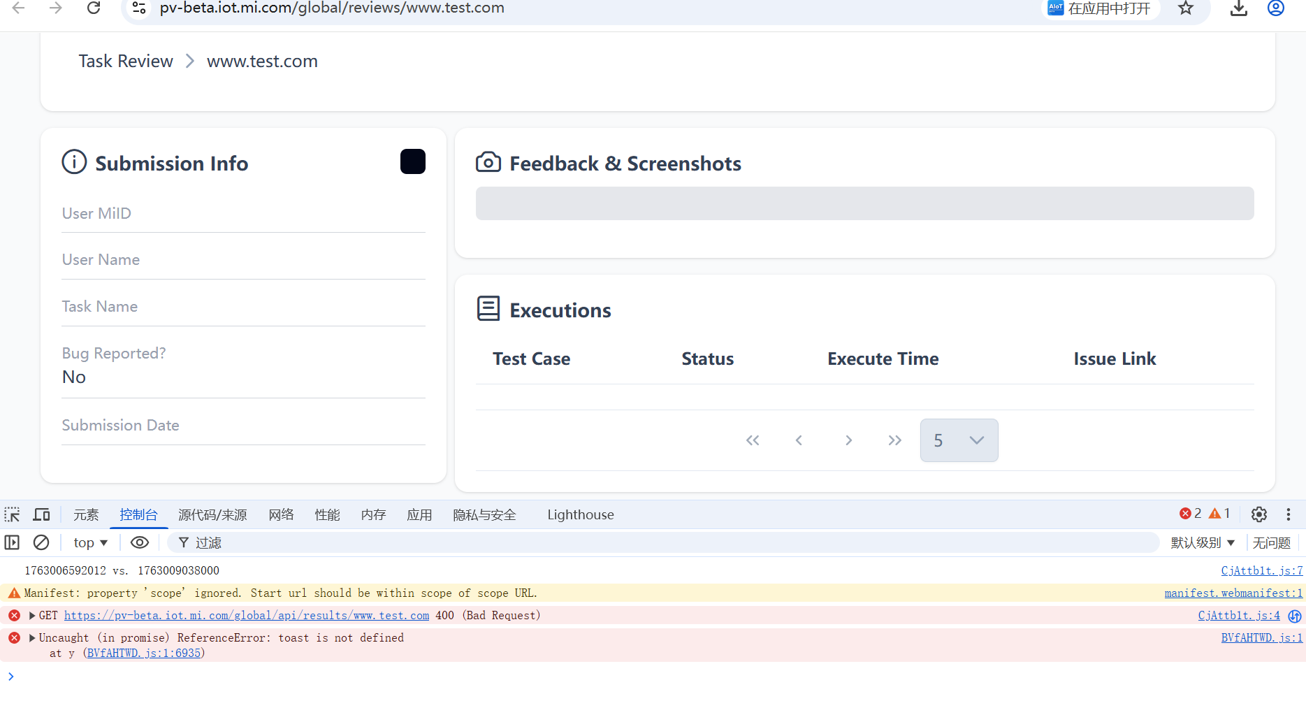 Go to task review page, review a task which reported a bug, click the issue link behind the failed cases, got a page without content